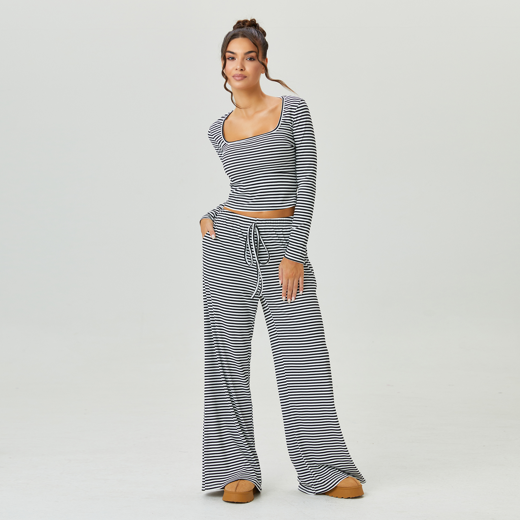KatchMe Slouchy Stripe Long Sleeve Crop Top & Low-Rise Trousers Co-ord